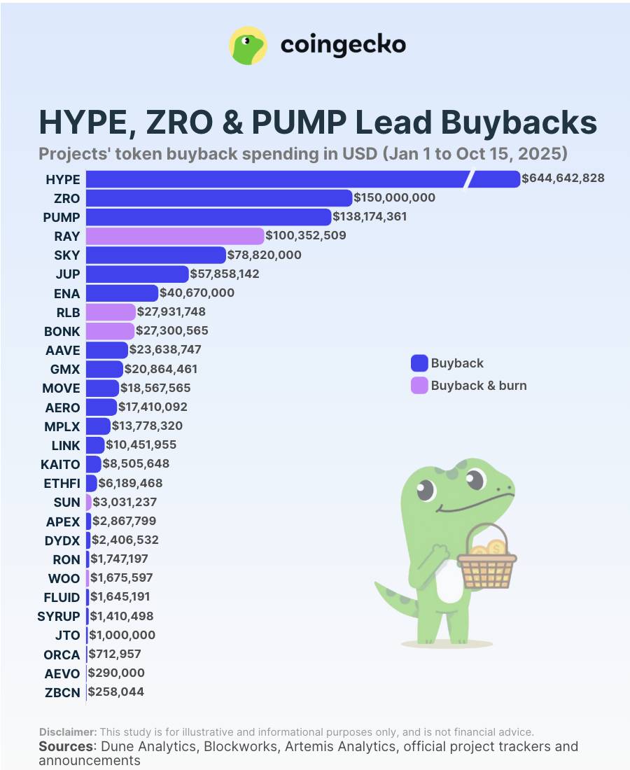 Theo dữ liệu từ CoinGecko, trong năm 2025, các dự án crypto đã chi hơn 1,4 tỷ USD để mua lại chính token của mình. Tuy nhiên, nghịch lý là phần lớn các token được buyback lại đi ngang hoặc giảm sâu, khiến cộng đồng và giới đầu tư bắt đầu nghi ngờ vai trò thực sự của buyback trong việc tạo giá trị bền vững cho người nắm giữ.