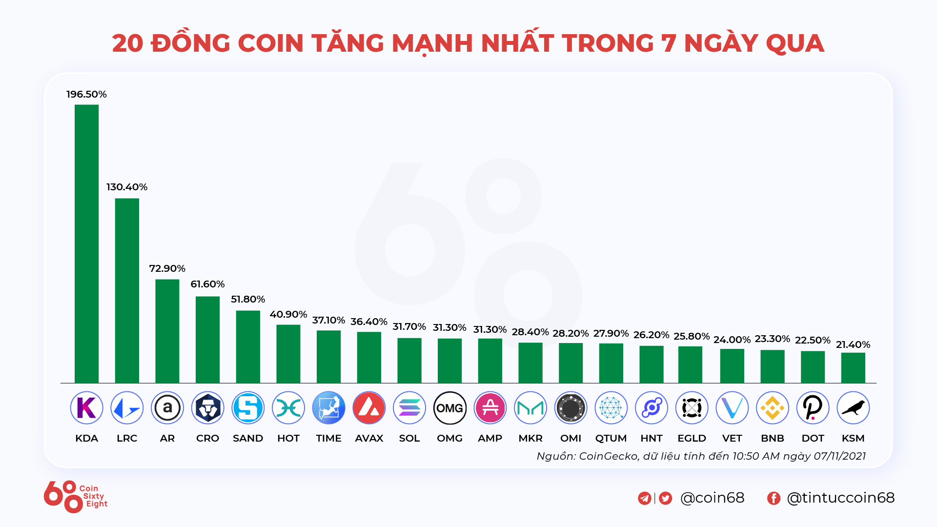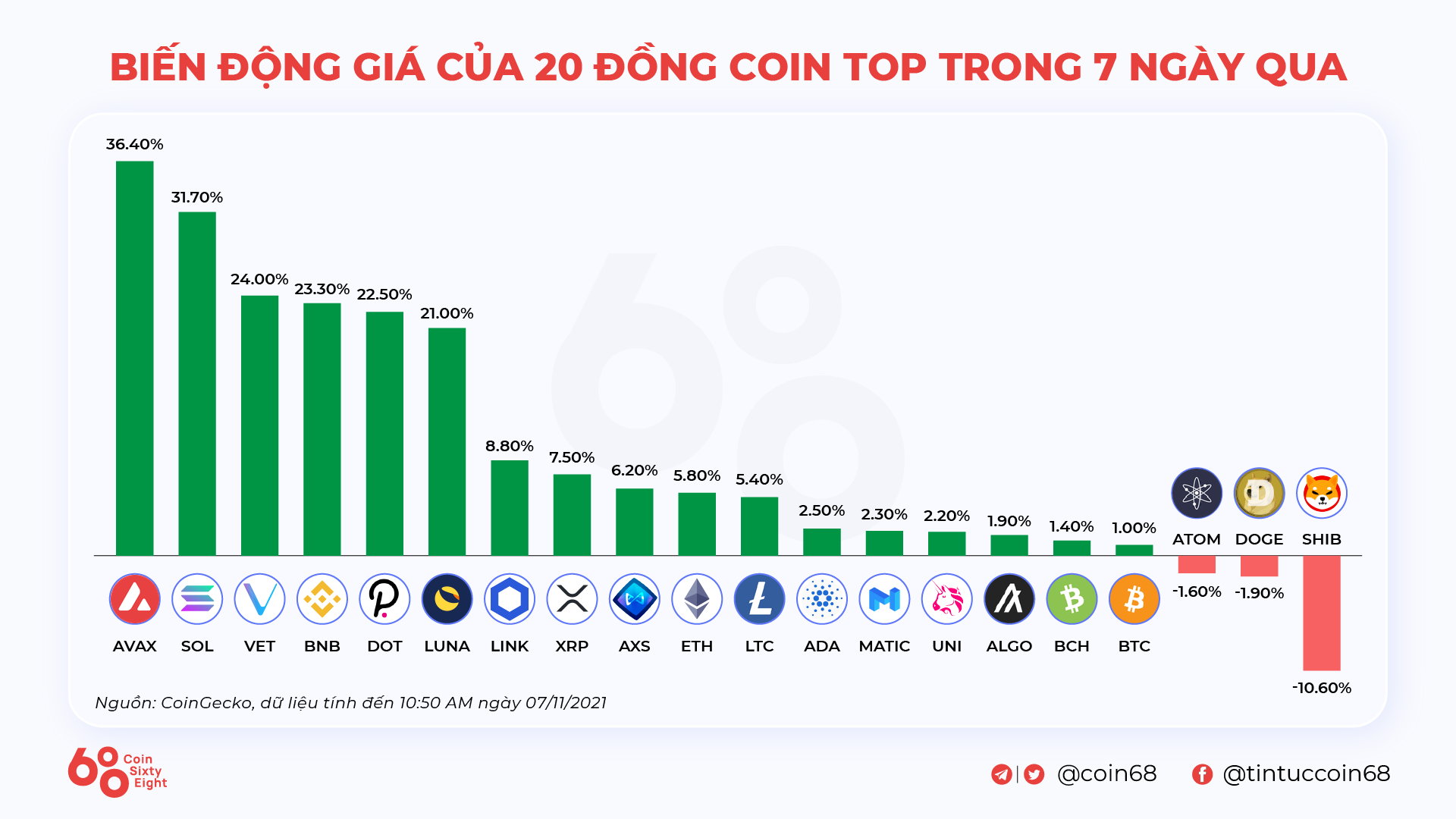 Khi Bitcoin tiếp tục xu hướng đi ngang, tuần đầu tiên của tháng 11 đã mở ra cơ hội để altcoin. Hàng loạt altcoin top đã lập ATH mới trong tuần vừa rồi, trong đó có ETH, SOL, AVAX, DOT,… Bên cạnh đó, xu hướng game và metaverse vẫn chưa có dấu hiệu hạ nhiệt khi hàng loạt dự án/hệ sinh thái công bố quỹ khủng để phát triển game trên blockchain.