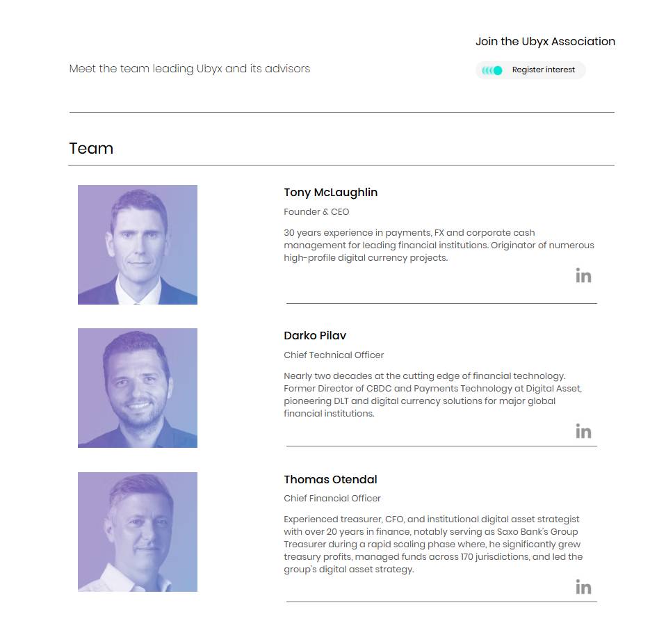 Ubyx được dẫn dắt bởi những chuyên gia giàu kinh nghiệm tại các tổ chức tài chính lớn nhất thế giới: