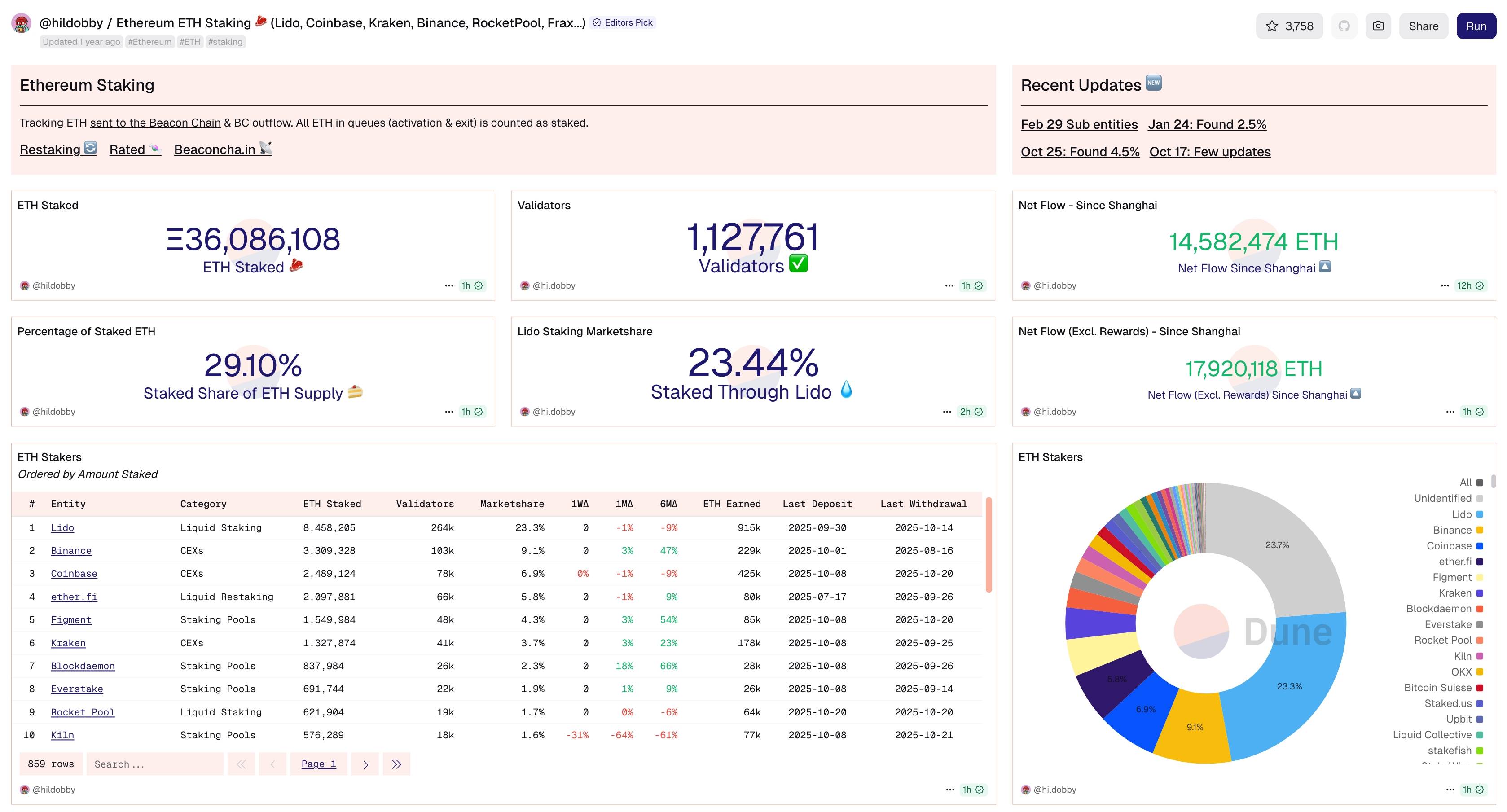 Thị phần liquid staking tính đến ngày 21/10/2025. Nguồn: Dune Analytics (hildobby)