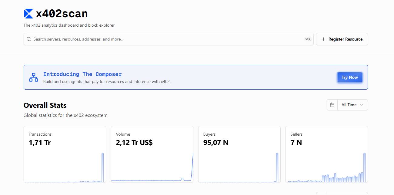 Theo x402scan, hệ sinh thái x402 đã ghi nhận 1,71 triệu giao dịch trên toàn cầu với khối lượng 2,1 triệu USD kể từ khi ra mắt. Đây được xem là một bước tiến lớn cho thanh toán blockchain trên nền tảng web, nhất là khi AI và các API ngày càng phát triển mạnh mẽ trên Internet.