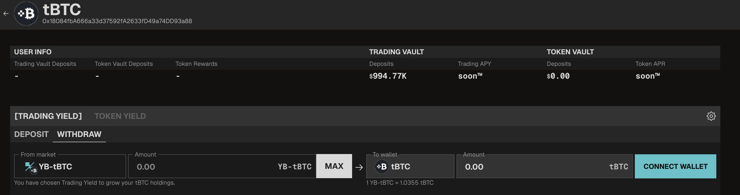 Khi bạn muốn rút tiền, hệ thống sẽ đốt 1 ybBTC và trả lại khoảng BTC gốc kèm lợi nhuận kiếm được từ phí giao dịch. crvUSD cũng được tự động trả nợ và rút thanh khoản khỏi pool Curve.